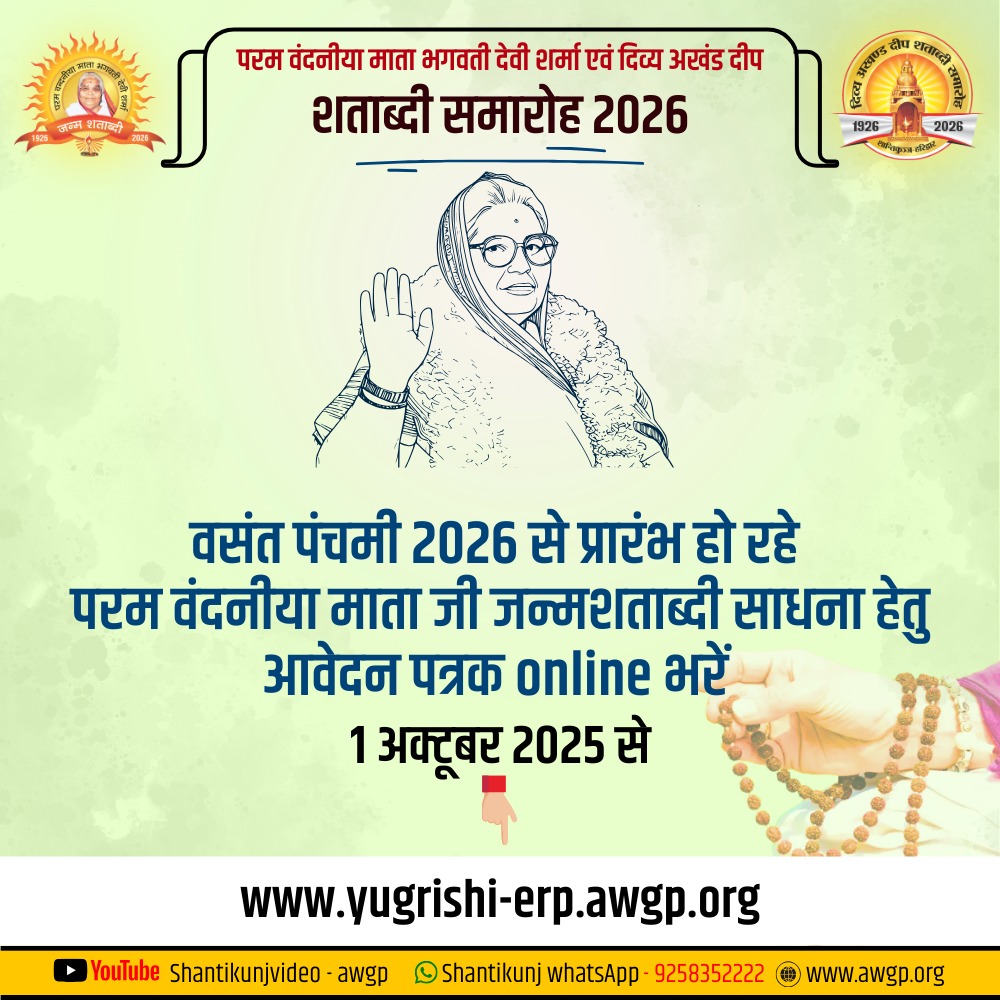 The year 2026 marks the Janmashatabdi of Vandaniya Mata Bhagwati Devi Sharma, the divine companion of Yugrishi Pt. Shriram Sharma Acharya. This centenary is not only a remembrance of her sacred advent but a global celebration of her ideals, silent strength, and unparalleled contribution to Yug Nirman Yojna.