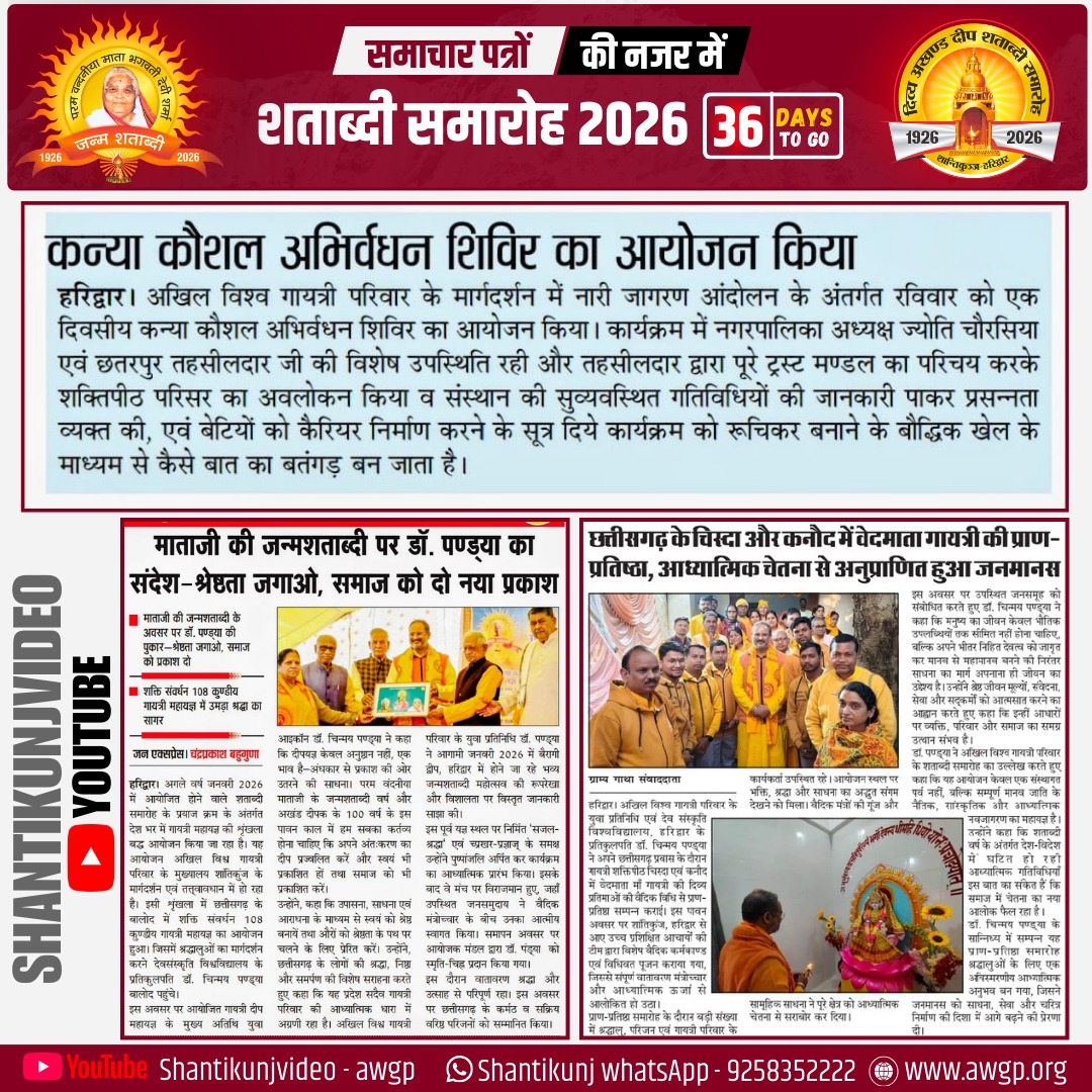 The celebrations are a call to devotees worldwide to transform themselves into living flames of Akhand Jyoti, pledging to advance Mataji’s vision through inner transformation, women empowerment, youth character-building, and collective era-building efforts.